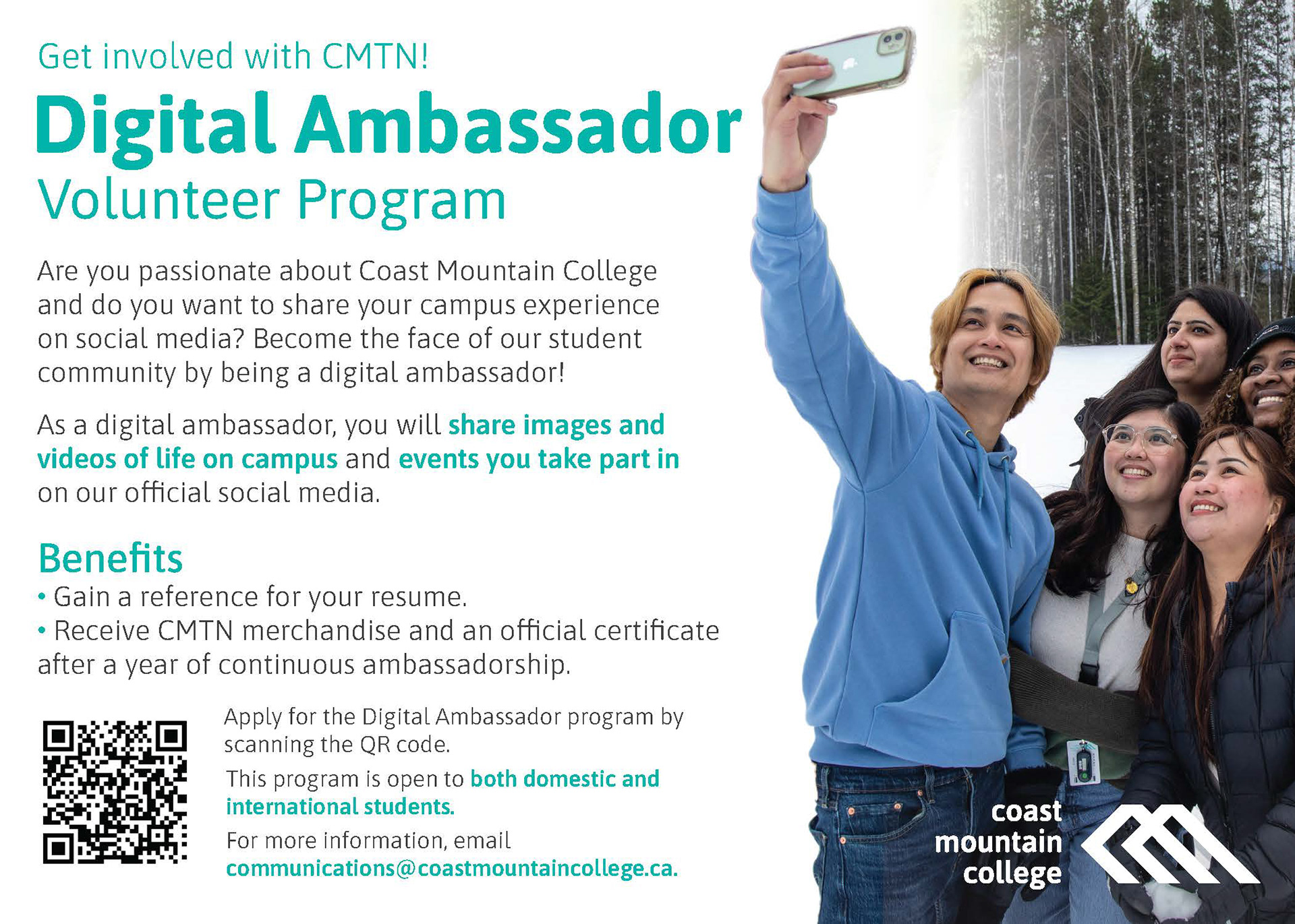 From October 2024 to September 2025, I worked at Coast Mountain College as their International Marketing Officer. However, I worked on both domestic and international projects. I created a multitude of content including print and web advertising elements, internal paperwork, videos, and more.